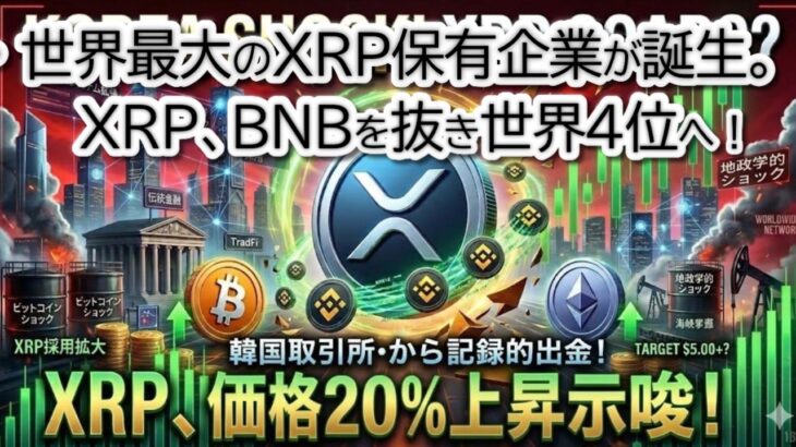 仮想通貨市場に激震!リップル(XRP)を巡る歴史的なパラダイムシフトが起きています。 韓国最大級の取引所「アップビット」では、XRPの記録的な取引所外出金が確認され、売り圧力が激減。テクニカル面でも「強気フラッグ」を形成しており、1.7ドル超え(約20%上昇)へのカウントダウンが始まっています。 さらに驚愕のニュースとして、リップル関連企業の**エバーノース(Evernorth)が、総額10億ドル […]