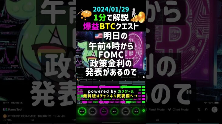 【2024/01/29】 #ビットコイン #btc #FOMC #政策金利 #原油在庫量 #仮想通貨 #暗号資産 #チャート分析ツール #デイトレード #voicevoxずんだもん