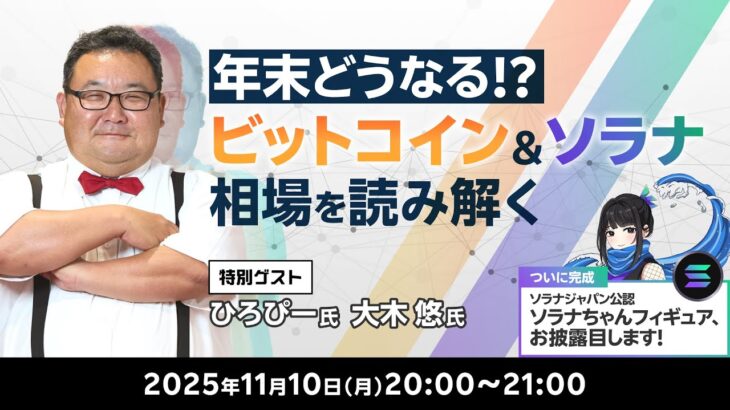 最新のビットコイン&ソラナ相場の動向を解説!特別ゲストにFX&暗号資産トレーダーのひろぴー氏、Superteam Japan大木氏をお迎えして、楽天ウォレットシニアアナリスト松田康生との対談方式でライブ放送いたします。 当日は、現在制作中のソラナちゃんフィギュアのお披露目も行います! 視聴者の皆様からのご質問にも、ライブ中に可能な限りお答えします、ぜひリアルタイムでライブにご参加ください。 ーーー […]