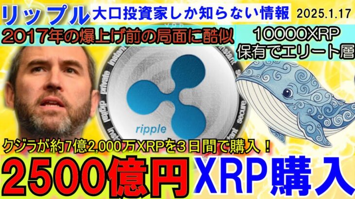 リップル(XRP)2500億円分をクジラが3日で購入!大口投資家だけが情報を知っている⁉2017年と同じ爆上げが今年クル⁉10000XRPを持っていればエリート層になれる!