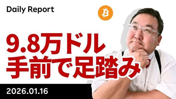 ビットコイン、9.8万ドル手前で足踏み、Clarity法案の反対の余波続く