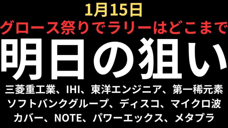 【日経下落もグロース指数祭り】チャートで見る明日の注目銘柄|三菱重工業、IHI、東洋エンジニア、第一稀元素、ソフトバンクG、ディスコ、カバー、NOTE、マイクロ波、パワーエックス、メタプラネット