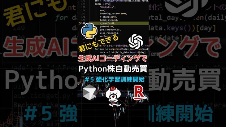 【株自動売買5】生成AIを使えば誰でも株自動売買システムが作れて大金持ちになれるか実験!強化学習訓練開始!プログラムチャレンジ【億り人】