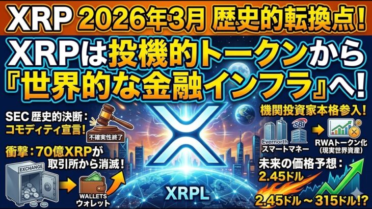 ついに訪れたXRP(リップル)の歴史的転換点!2026年3月、長年の不確実性が払拭され、XRPはただの「投機的トークン」から「世界的な金融インフラ」へと劇的な進化を遂げました。 この動画では、わずか1ヶ月の間に裏側で何が起きていたのか?なぜ70億XRPが取引所から消えたのか?そしてSECによる歴史的な「コモディティ宣言」がもたらしたパラダイムシフトについて、5つの章に分けて徹底解説します。 機関投 […]
