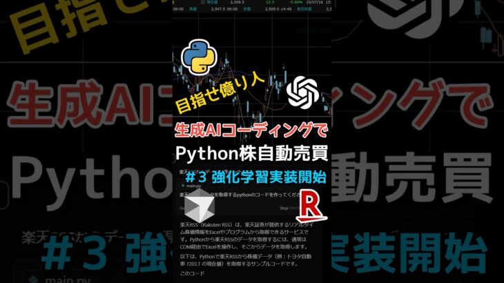 生成AIを使ったバイブコーディングをつかえば株自動売買システムが簡単に作れるのではないかという目論見のもと始めたこのシリーズ。今回から強化学習の実装を開始します。 強化学習は半教師アリ学習と呼ばれているとおり、行動、状態、報酬を定義して報酬が最大化するようにAIが学習をしていく手法で、囲碁の世界チャンピオンに勝てちゃうようなすごいAIです。実際のトレードにも今はAIがかなり活用されているそうなので […]